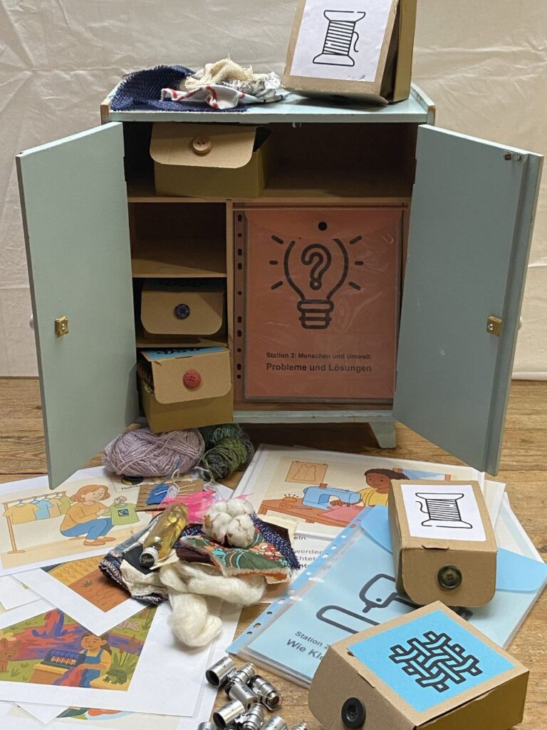 ![]() | Methodensammlung: Kleiner KleiderschrankDer Kleiderschrank vermittelt ein grundlegendes Verständnis für die Herkunft und Herstellung von Textilien. Mit Handmikroskopen lassen sich verschiedene Stoffbeispiele erforschen. Mit verschiedenen Bildern lässt sich entdecken, wie die Produktion abläuft und welche sozialen und ökologischen Fragen mit der Bekleidungsindustrie verbunden sind. Verorten lässt sich dies auf einer Weltkarte und einen praktischen Zugang geben kleine Webrahmen aus Karton. | ![]() |